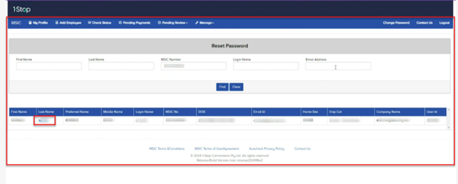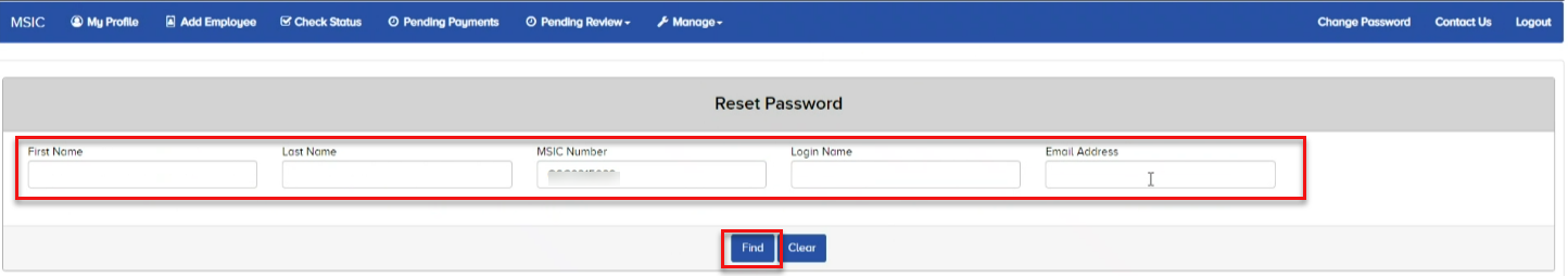 3. Enter the employee's name or MSIC number and click the ‘Find’ button.