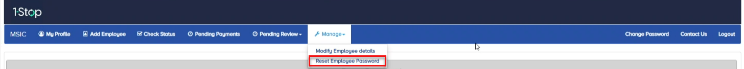 2. Click ‘Reset Employee Password’ from the drop-down menu.